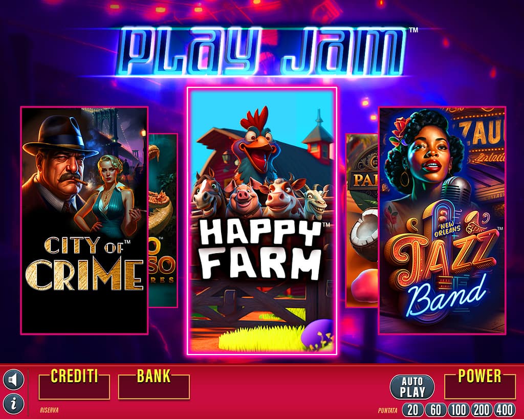PLAY JAM Info game Cycle: 40,000 games Payout: 75% as required by law. game preview City of CrimeCrazy farmMato GrossoNew Orleans Jazz BandParadise Beach Scheda precedente Scheda successiva